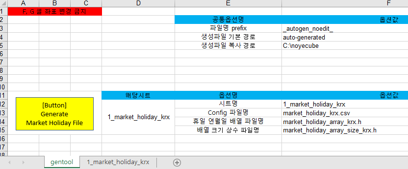 DWORD 타입의 배열 및 맵으로 관리하기 위하여 엑셀 매크로를 활용하여 YYYYMMDD 형식으로 변환 후 헤더파일을 생성하였습니다. 다음과 같이 관리하면 휴장일이 추가/삭제되더라도 간단하게 변경사항 적용 가능합니다. 소스코드에 포함하는 휴장일 정보는 휴장일 설정파일이 없을 때 기본 설정파일을 생성하기 위한 용도이며 지정 경로에 설정파일이 존재하면 설정파일로부터 휴장일 정보를 읽습니다.