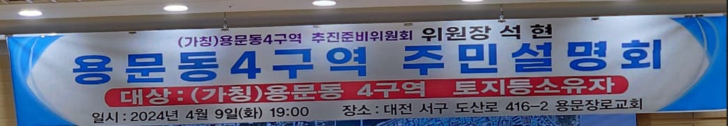 이번 포스팅에서는 대전 용문동4구역 재개발 주민설명회 내용을 공유해 드리겠습니다.