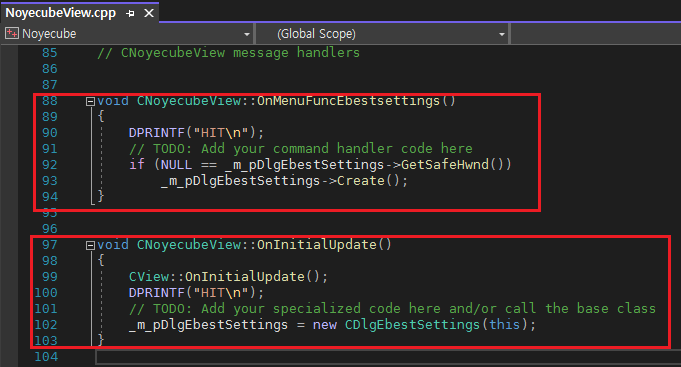 Private 변수로 CView* _m_pNoyecubeView; 도 하나 정의했습니다.