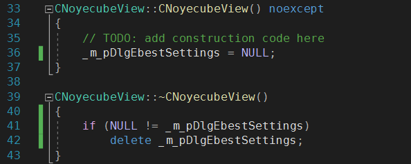 cpp파일에는 기본 생성자에 _m_pNoyecubeView를 NULL로 초기화 해주고