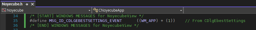 MSG_ID_CDLGEBESTSETTINGS_EVENT 메시지를 던질 때 파라미터로 이벤트값을 넘겨줘야 하는데 Resource.h에 정의되어 있는 ID값으로 어떤 컨트롤에 이벤트가 발생했는지 알려줘도 되지만 저는 switch문의 점프테이블이 0번부터 깔끔하게 다시 정렬되는 것을 원하므로 아래와 같이 Resource.h의 ID에 대응되는 이벤트를 별도 정의하였습니다.
