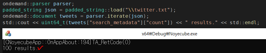 https://github.com/simdjson/simdjson에서 simdjson.h 파일과 simdjson.cpp 파일 단 2개만 다운로드하여