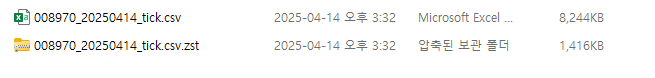요즘 제가 주식 틱체결 데이터를 수집 중인데요, 체결틱, 호가틱 등 하루치 데이터가 무려 종목당 수십MB까지 커지다 보니 이걸 그냥 저장하면 디스크 공간을 만만치 않게 차지하더라고요.