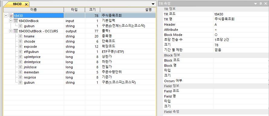 4. 패킷(프로토콜) 설계 고려사항(주식 전종목조회 T8430 기준으로)