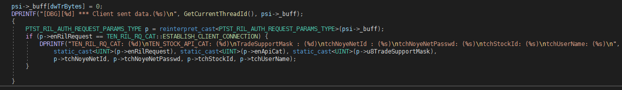 DPRINTF("TEN_RIL_RQ_CAT: (%d)\nTEN_STOCK_API_CAT: (%d)\nTradeSupportMask : (%d)\ntchNoyeNetId : (%s)\ntchNoyeNetPasswd: (%s)\ntchStockId: (%s)\ntchUserName: (%s)\n",