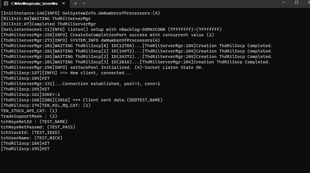 API 커넥터가 서버(트레이딩 프로그램)로 접속시 가장 먼저 전송해야 할 Initial Packet은 로그인정보로 결정했습니다.