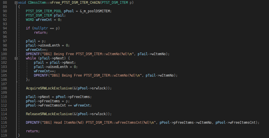 DPRINTF("DBG] Being Free PTST_DSM_ITEM::wItemNo(%d)\n", pTail->wItemNo);