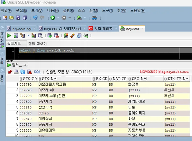 테이블 조회 결과 한글이 깨지지 않고 정상적으로 표기되고 있습니다.