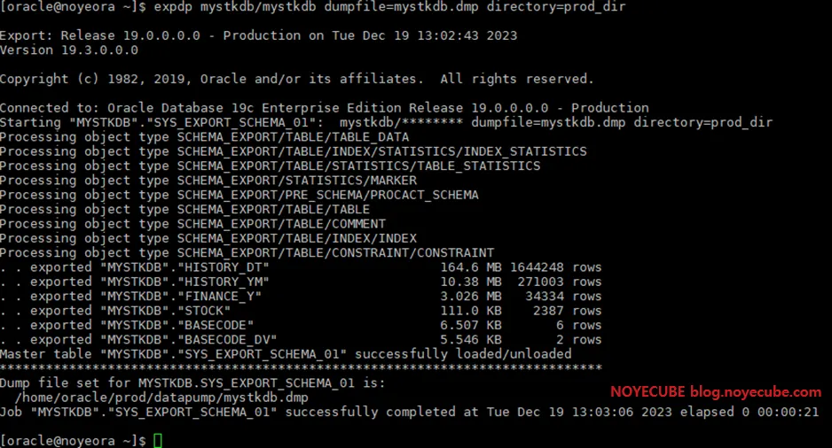 [oracle@noyeora ~]$ impdp mystkdb/mystkdb dumpfile=mystkdb.dmp directory=datapump_dir
