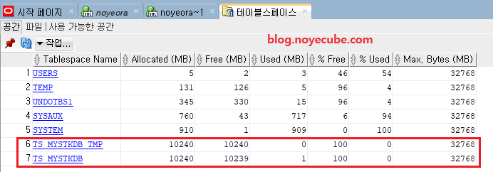 - 테이블스페이스명은 일치하지 않아도 됩니다.