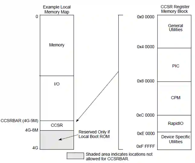 위 그림을 보면 CPM 메모리 영역은 Configuration, Control, and Status Register Map(CCSR) 영역의 하위 트리에 위치하고 있는 것을 확인할 수 있으므로 CCSR 영역 하위에 CPM 메모리 영역을 할당해야 한다. 이에 앞서 QEMU에서 CPM을 하나의 주변장치로서 인식할 수 있도록 장치등록을 해야 한다.