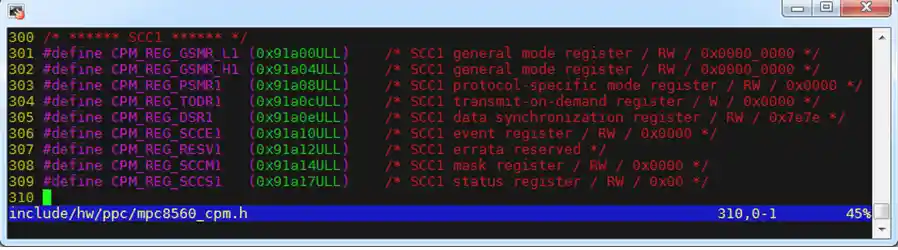 위 그림에서 CPM_REG_SCCE1 레지스터에 접근이 이루어졌을 경우 SCC1 베이스 어드레스 0x91a00에 등록된 핸들러가 호출되고 CPM_REG_SCCE1의 오프셋이 인자로 전달된다.