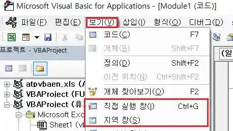 Debug.Print 를 사용하면 코드 편집기의 "직접 실행" 창에 메시지를 출력할 수 있습니다.