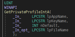 INT iReturnedInt; : 설정파일에서 읽은 숫자(GetPrivateProfileInt 사용시)