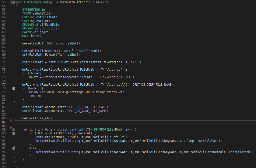 void vCreateDefaultConfigFile(void); : 설정파일이 없으면 Default 값으로 설정파일 생성
