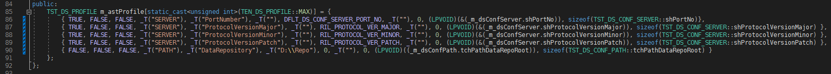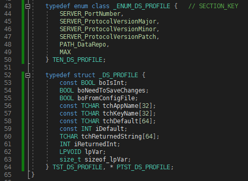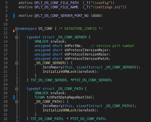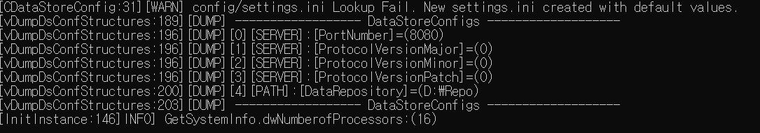 - DataStoreConfig 클래스에 설정파일의 각 SECTION에 대응하는 Structure를 정의한다.