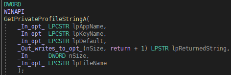 INT iReturnedInt; : 설정파일에서 읽은 숫자(GetPrivateProfileInt 사용시)