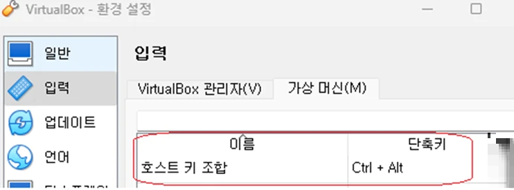 게스트OS에 마우스커서가 갇혀있을 때는 모든 입력이 게스트 OS로만 전달됩니다. Escape Key 설정을 VMware와 동일하게 Ctrl+Alt 조합으로 변경하면 편리합니다.