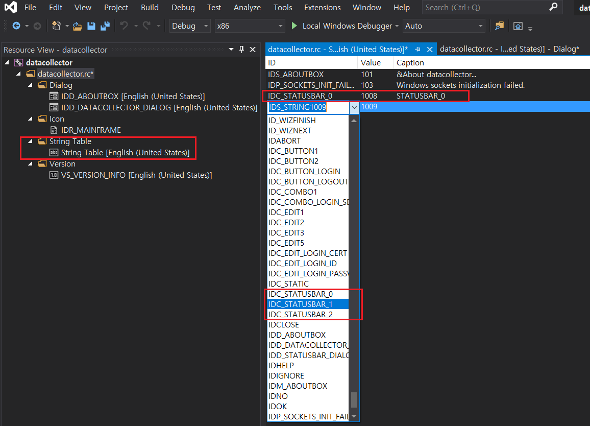위에서 추가한 리소스 ID를 String Table에 추가해 줍니다.