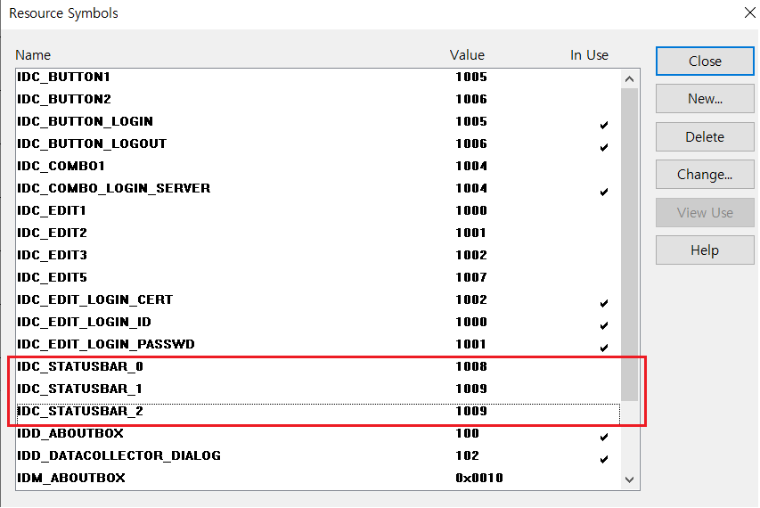화면 하단에 상태 바(StatusBar) 추가를 위하여 Resource Symbols 창을 열고 아래와 같이 ID생성을 해줍니다.
