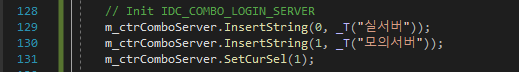 | 접속서버 | ComboBox | IDC_COMBO_LOGIN_SERVER | type:DropList, Sort:False | CComboBox:: m_ctrComboServer |