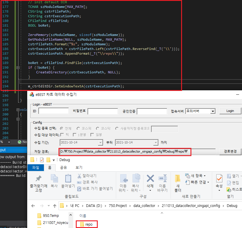 수집한 차트 데이터의 기본 저장 경로는 프로그램 실행경로 하위에 "repo" 폴더로 하겠습니다.