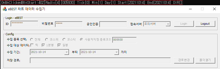 | [xingAPI][차트 데이터 수집기 만들기](3) 로그인/로그아웃 (0) | 2021.10.04 |
